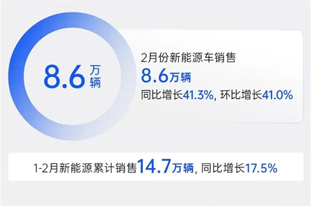 雷厉风行的系列举措已获得初步成效。根据官方数据显示,上汽集团产销回升明显,2月汽车销量29.5万辆,同比增长41.9%;其中新能源汽车销量8.6万辆,同比增长41.27%。今年前两月,上汽集团累计销量达到55.9万辆,同比增长两成以上。