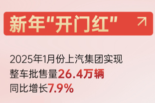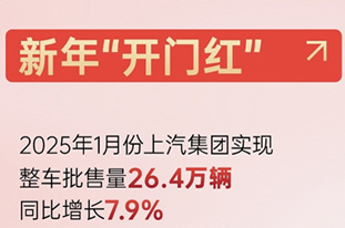 上汽集团2月4日宣布,1月份公司实现整车批售26.4万辆,同比增长7.9%,终端交付35.3万辆,领跑国内同行,实现了2025年的“开门红”。